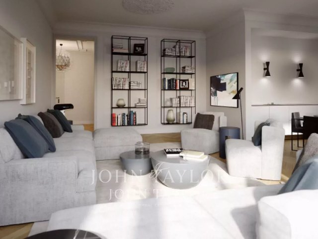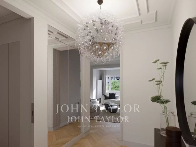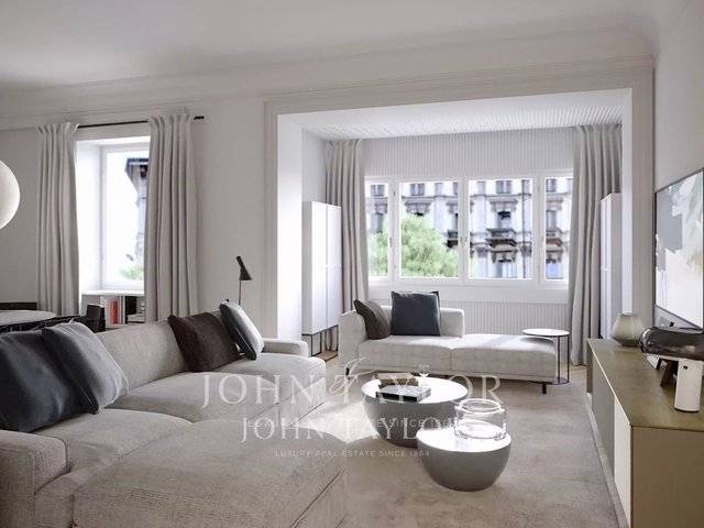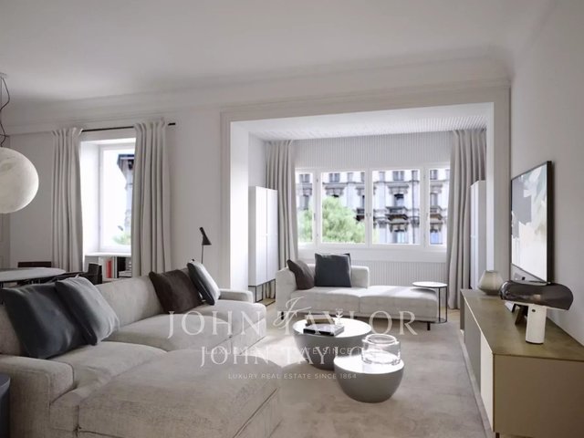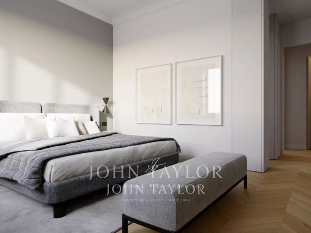 ESCLUSIVE TO JOHN TAYLOR period setting, elegant residence of about 120 sqm. on a high floor, well laid out, bright and very quiet, with splendid fine historical finishes and high ceilings. Composed of a large entrance hall, spacious eat-in kitchen, three bedrooms, bathroom with the possibility of a second bathroom, storage room, and two balconies. The property is completed by a cellar. Possibility to restore valuable original finishes. Possibility of parking space.