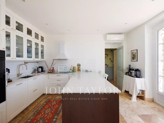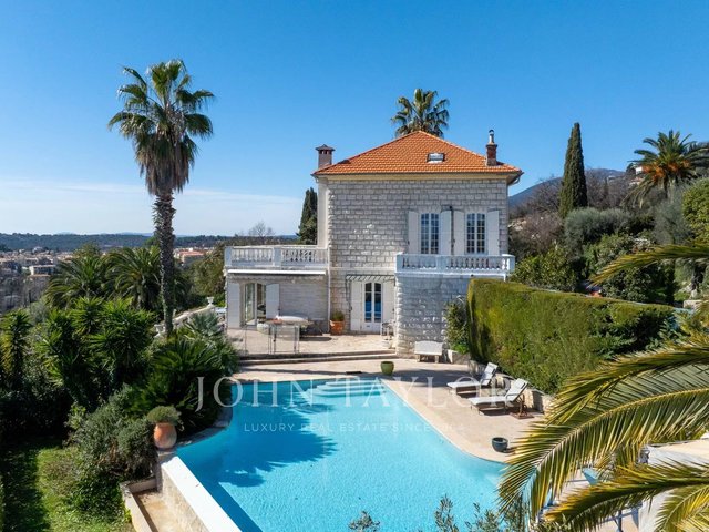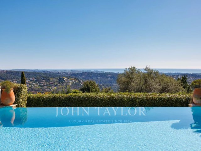 Located in the residential heights of Vence, this charming 1920s stone residence of approximately 240 sq.m offers panoramic views over the sea and the French Riviera. Set on a beautifully landscaped 1,500 sq.m garden with a heated swimming pool, it provides a peaceful and elegant living environment.