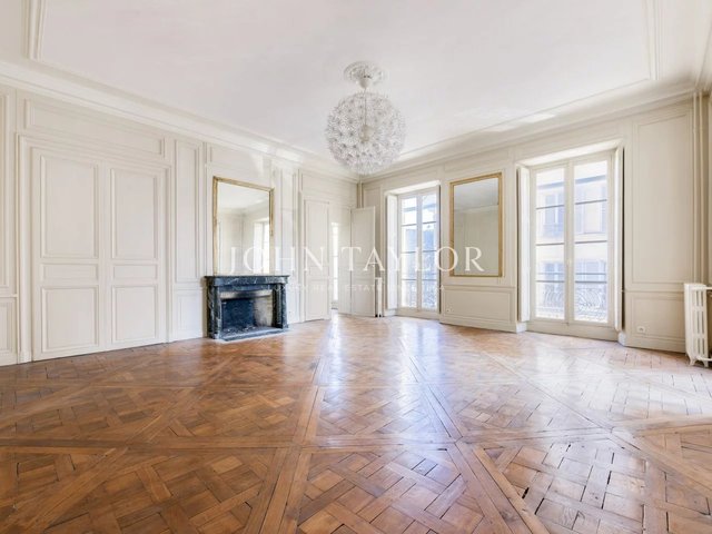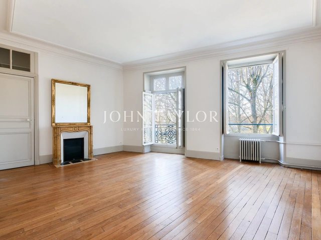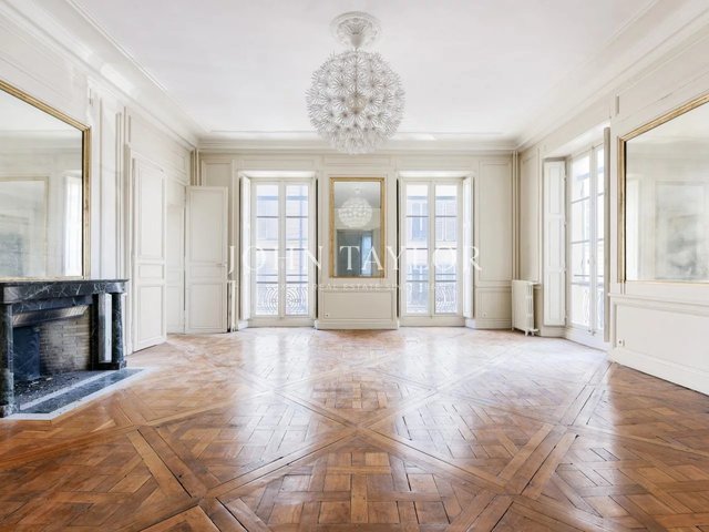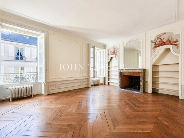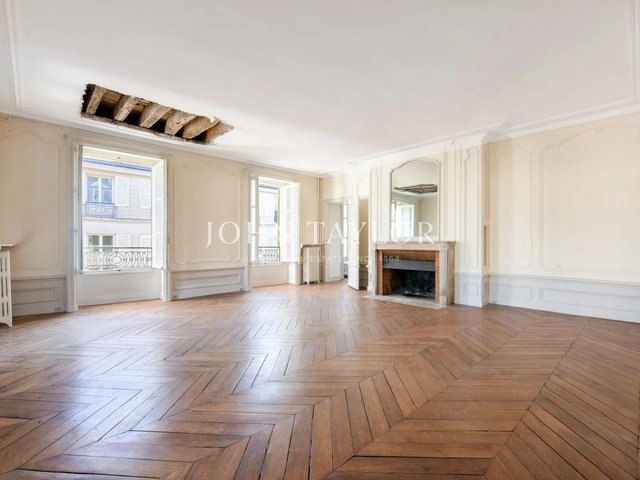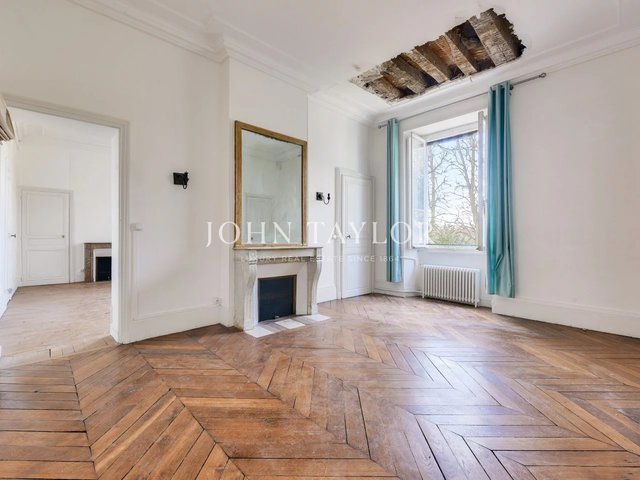 The apartments benefit from high ceilings, uninterrupted light thanks to east-west exposure, and Hausman-style features (solid parquet flooring, moldings, fireplaces).