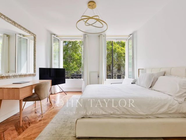Through and through, bright and perfectly laid out, it offers the charm of the finest Parisian apartments: herringbone parquet flooring, period fireplaces, moldings and 3-meter high ceilings.