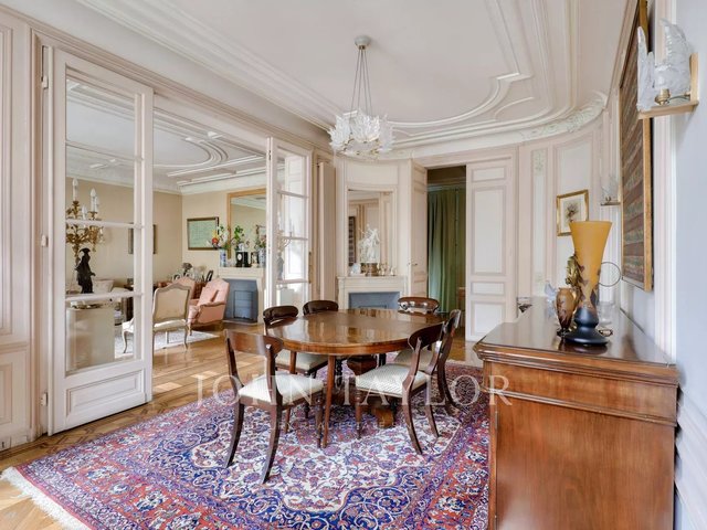 VICTOR HUGO - POMPE. This elegant 140 m² apartment, located in a listed building in the 16th arrondissement of Paris, embodies the ultimate in luxury and comfort. Comprising four rooms, including two spacious bedrooms, it offers an exceptional living environment. The main living room is distinguished by its period fireplace, which adds a touch of warmth and refinement to the ensemble.