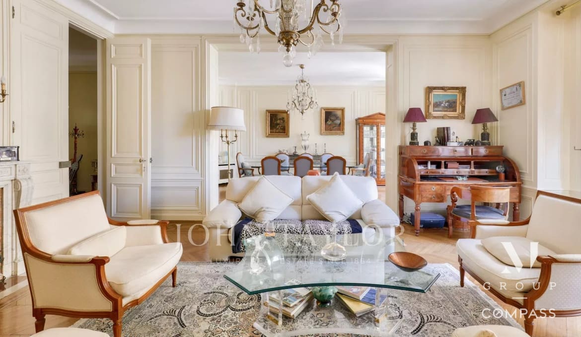 A large cellar completes this apartment for renovation, which has retained its original herringbone parquet flooring, moldings and fireplaces.