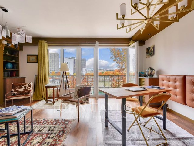 In a well-maintained semi-modern building with elevator, we are pleased to present this bright through-apartment of 80.62 sqm (Carrez law), located on the third floor, offering a rare living environment with open views over the Seine.