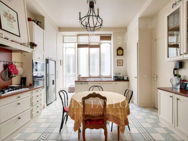 The charm of the past has been preserved in all its splendor: original parquet flooring, beautiful moldings, marble fireplaces and a long balcony.