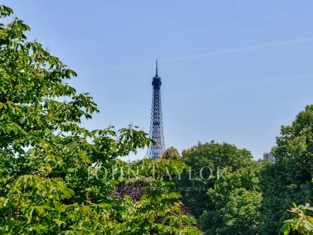 AVENUE RAPHAEL. In one of the most sought-after environments in the 16ᵉ arrondissement, facing the Ranelagh gardens, this 228.47 m² (209.44 m² Carrez) through-plan reception apartment enjoys unobstructed views as far as the Eiffel Tower and absolute calm.